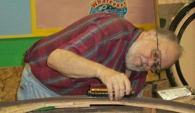 Fellow "Founding Member" Marvin Crim feels the need to run some trains after his long time track laying and wiring efforts.
