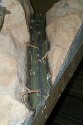 Marvin has been painting the small creek bed and today started to apply gloss medium to give the surface a wet look. Several more coats ans some assorted debris will be added before it is complete.